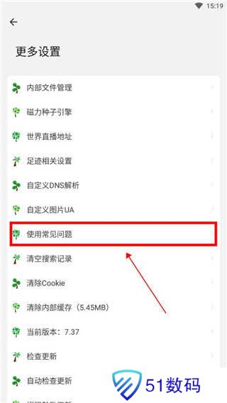 2、进入后选择【使用常见问题】。