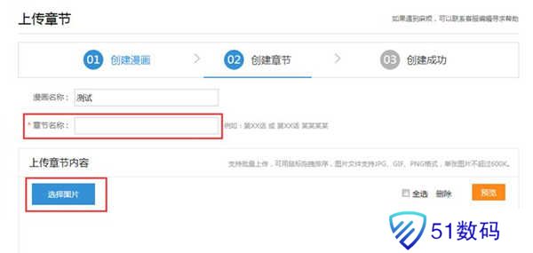 (1)、在创建章节页面,填写章节标题,并点击选择图片按钮上传图片,最后点击确定按钮即发布成功。