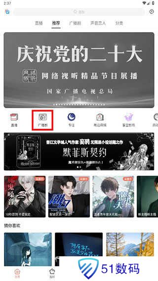 1、从本站下载猫耳FMapp,安装后进入首页,找到【广播剧】模块
