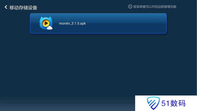 从U盘中找到电视猫视频(云视听MoreTV)apk安装包,点击安装包;
