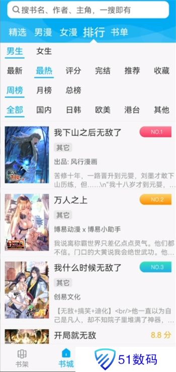2、这里是软件书城中的排行功能,在这里可以观看到每日在这里各种排行同类书籍前面的动漫,发现更多好的动漫作品;