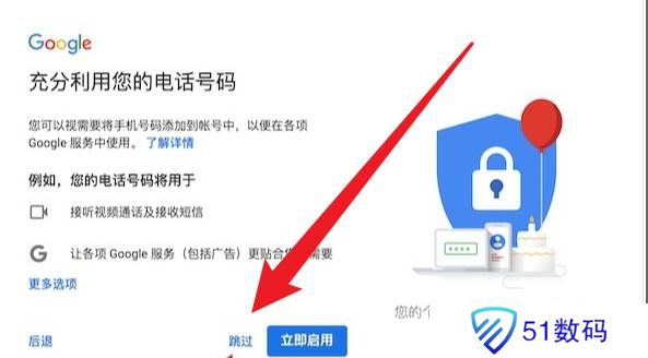 7、下一步是填入账号的绑定信息,填完后谷歌提示的页面,点击跳过。