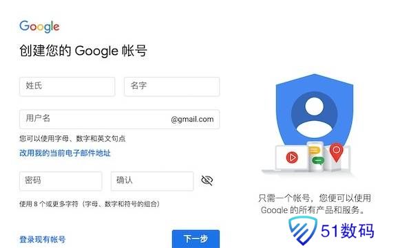 谷歌账号注册如下