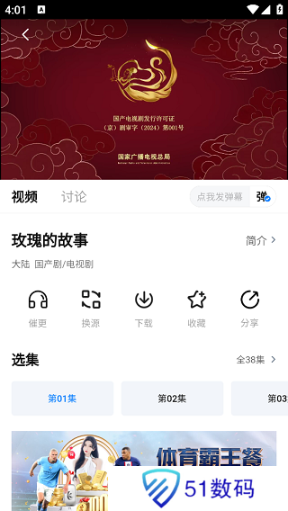 3、点击想要观看的视频,即可进入到播放详情页中,在这里我们可以收藏、下载、分享视频。