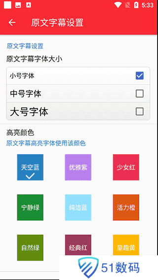 4、这个界面就是可以设置字幕大小和字体颜色的界面了。