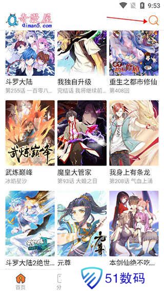 1、下载好软件之后打开app,并默认进入首页,在这里找到你想要阅读的漫画。