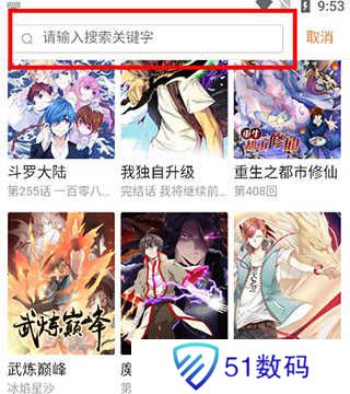 1、在本站下载安装奇漫屋漫画app,点击书城中的输入框;
