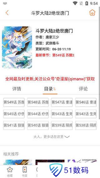 2、进入漫画详情页面之后,你可以进行收藏、添加书架以及历史记录等操作,点击下方的开始阅读。