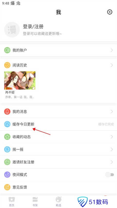 4、收藏完成之后来到我的界面,点击缓存今日更新。