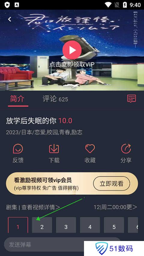 1、需要注意的是用户想要进行投屏时,需要投屏设备和手机在同一WIFI下,然后用户在手机上打开最新版本的软件,进入页面中找到自己想要投屏的动漫,然后在打开的动漫详情页面中点击底部选择想要观看的动漫剧集