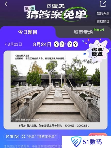 饿了么免单8.24答案是什么?饿了么免单玩法是用户在指定时间下单的就可以获得免单机会的玩法,今天的饿了么免单问题是关于嘉定儒风的,想要知道今天饿了么免单的具体免单时间,就跟着小编一起来看看今天的免单时间预测吧。