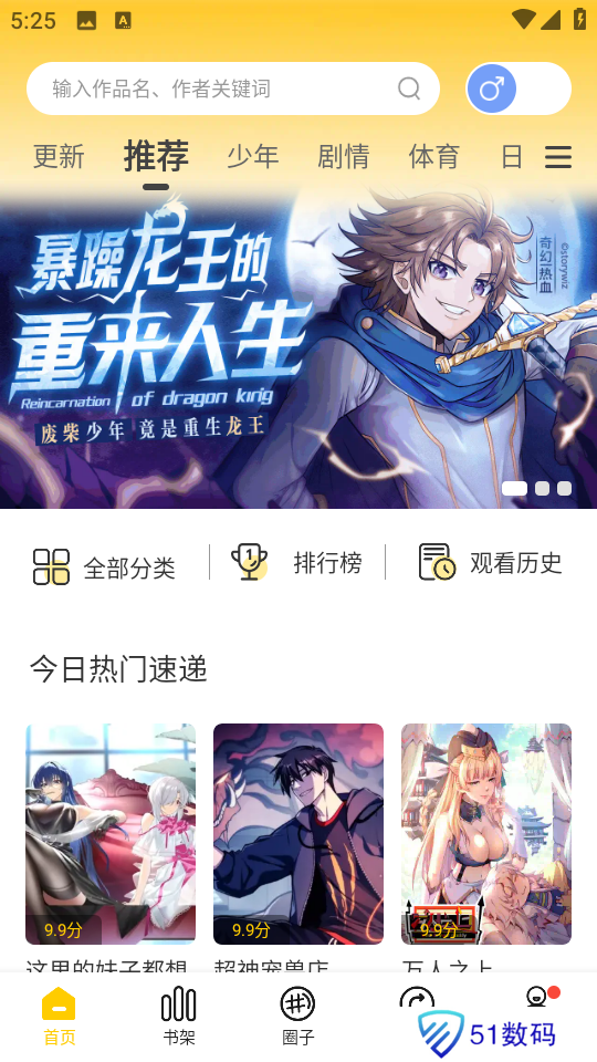 首先,安装好之后进入软件的主界面,你会看到热门的、最新的漫画作品都展示在这里。