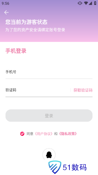 2、使用qq或手机号码验证即可快速注册并登录app
