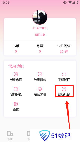 1、首先进入海棠读书app,进行登录注册;