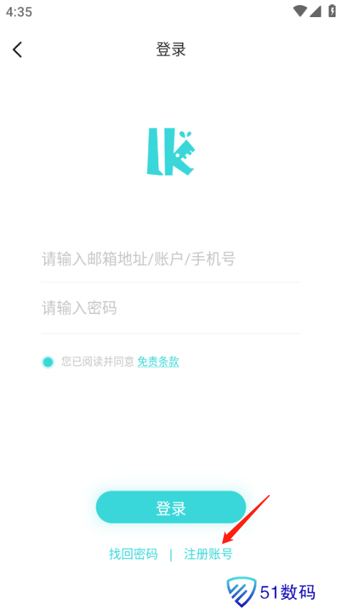 3、点击注册账号。