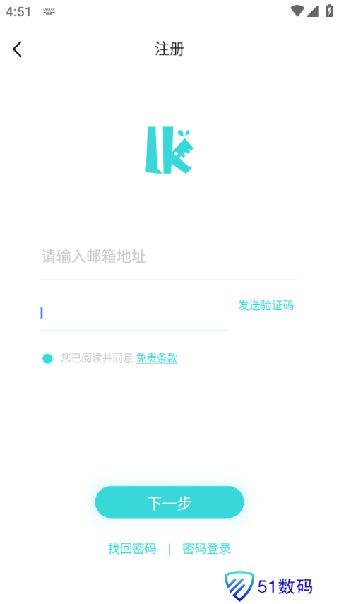 4、输入邮箱地址,点击发送验证码,然后登录这个邮箱的官网接收验证码。填完验证码点击下一步进行账号密码设置即可注册完成。