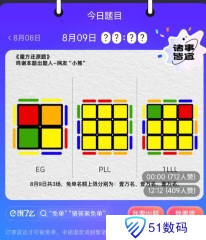 场次8月9日共3场,免单名额上限分别为壹万名、壹万名、壹万名