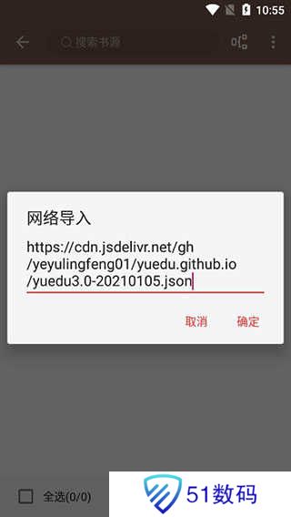 3、将上面的书源粘贴复制到软件界面中,点击确定;