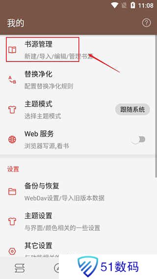 1、在本站下载打开开源阅读app手机版,点击我的,进入书源管理界面;