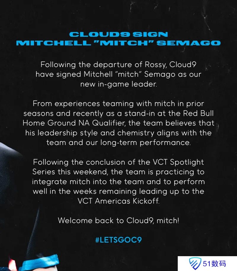 VCT AMER赛区C9战队官宣与Rossy解除合同,原文大意如下: