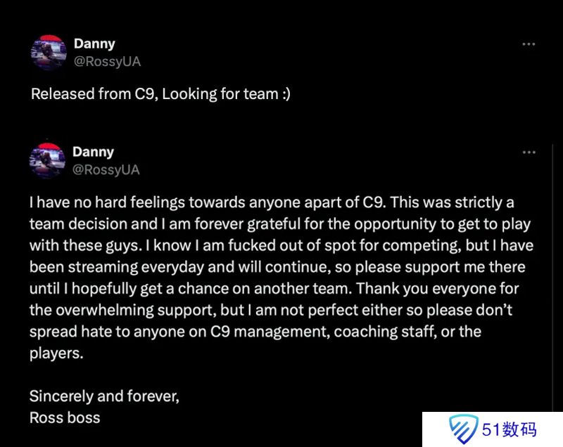 Rossy发文离开C9:这是队伍的决定,感谢能和他们一起打比赛