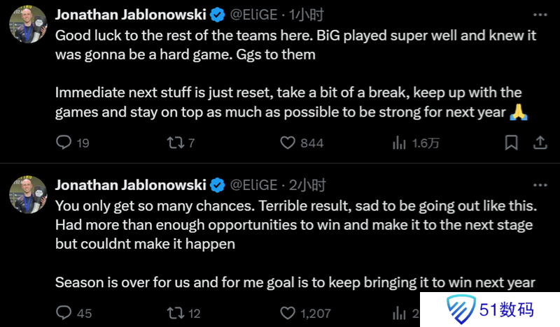 EliGE:机不可失,失不再来。糟糕的成绩,很遗憾以这样的方式出局。我们有很多机会获胜晋级,但却没能做到。