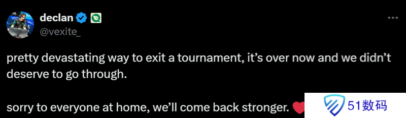 Vexite:真是以颇为沮丧的方式退出了赛事,现在比赛已经结束,我们不配晋级。