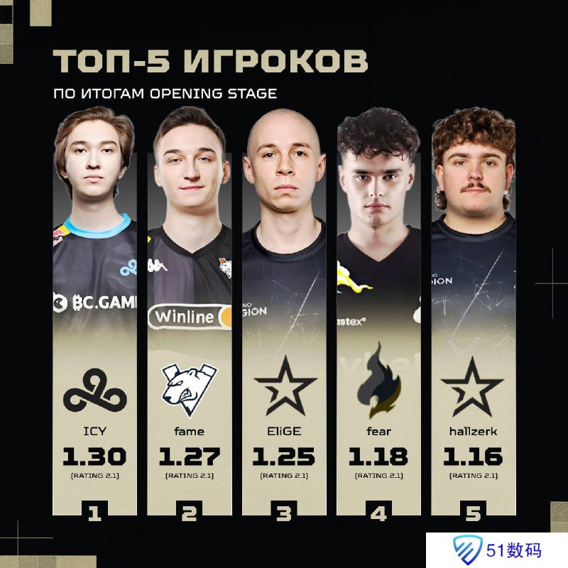 据统计,在上海Major开幕赛阶段中,rating排行榜前5名有4名选手来自