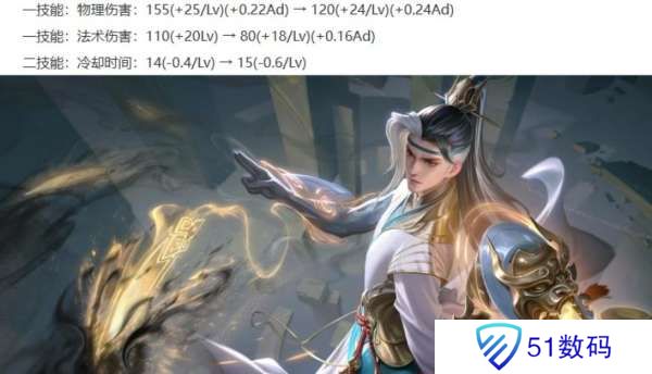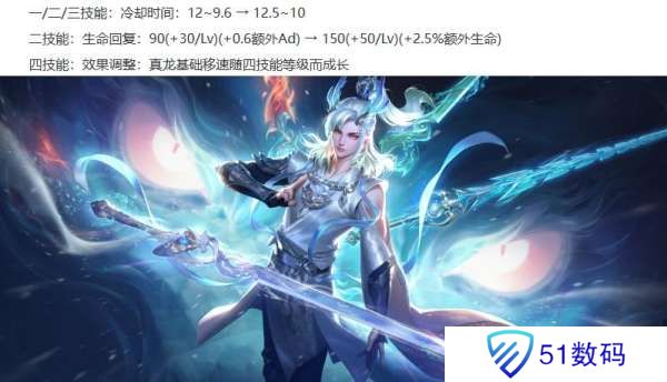 敖隐削弱:1/2/3技能的CD增加0.5~0.4秒,2技能的前期回血增加,且回血改为额外生命加成,4技能真龙的移速随技能等级变化。