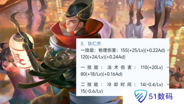 再来看狄仁杰的调整,官方对于狄仁杰的调整就是削弱1技能的基础伤害,但是增加一技能的AD加成。