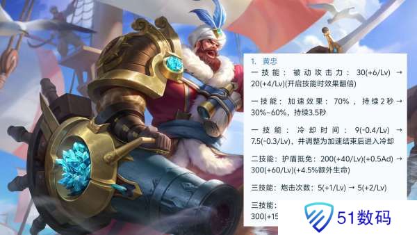 再就是大招的炮击次数,原来提升一级增加一次,改为了提升一级增加两次,满级大招就可以用9次,大大提高了黄忠的强度。虽然黄忠大招的伤害有所降低,但是综合来说,这次调整对于黄忠来说也是一次大幅度的增强。