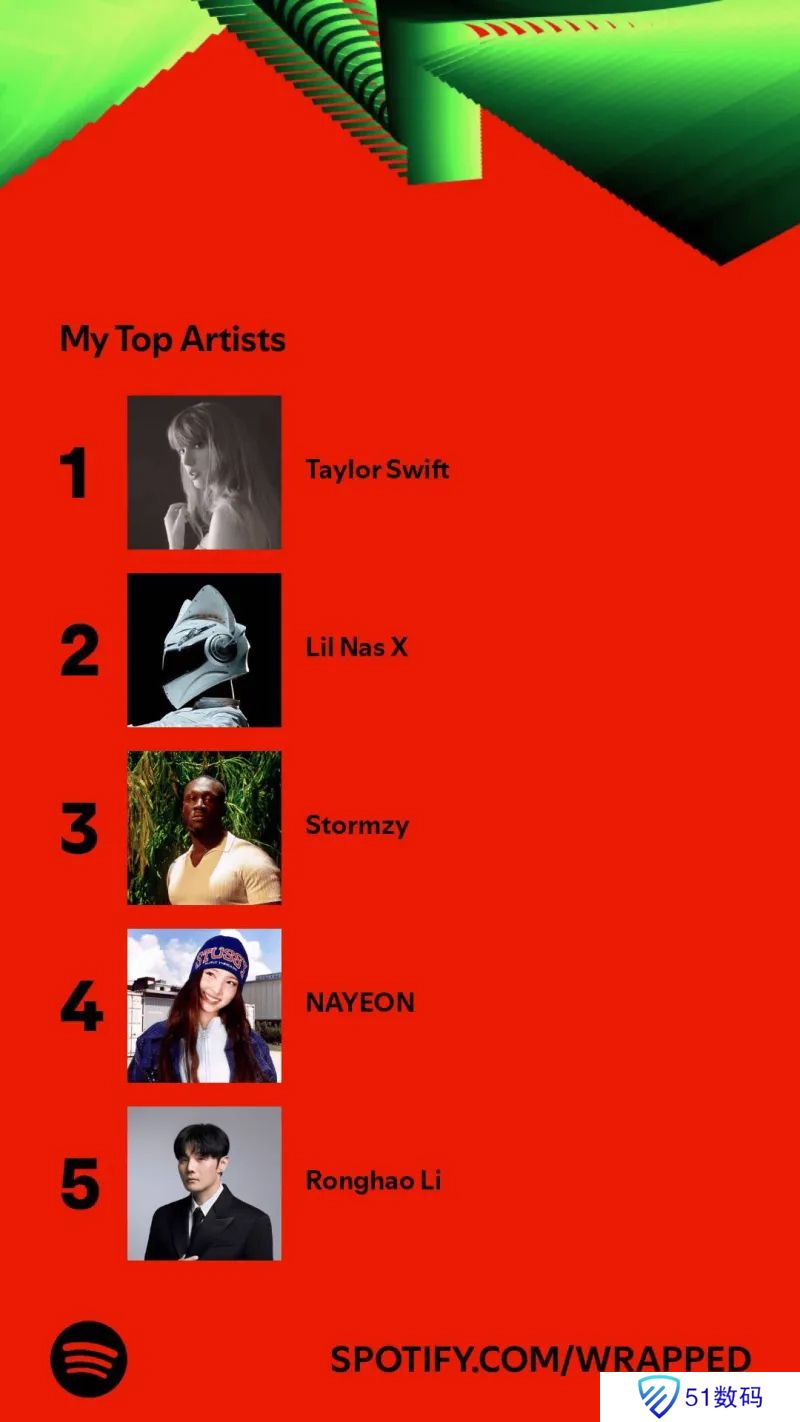 年度歌手中第五位为中国歌手李荣浩