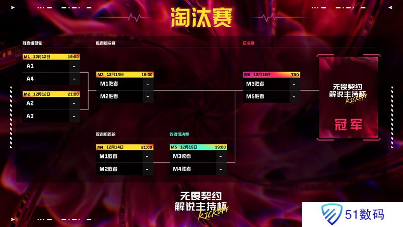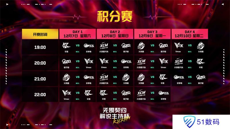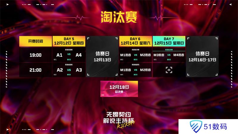 本次无畏契约解说主持杯KICKOFF将分为三个阶段:12月7日至12月10日的积分赛阶段,12月12日、14日和15日的淘汰赛阶段,12月18日的总决赛。