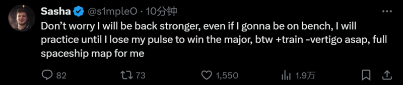 在日前进行的上海Major 欧洲RMR A组回家局中,s1mple所在的