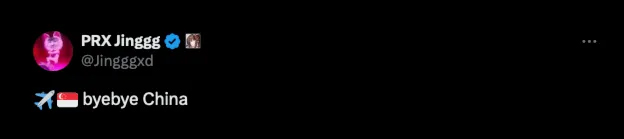 PRX战队Jinggg选手发文:回新加坡啦,再见中国!