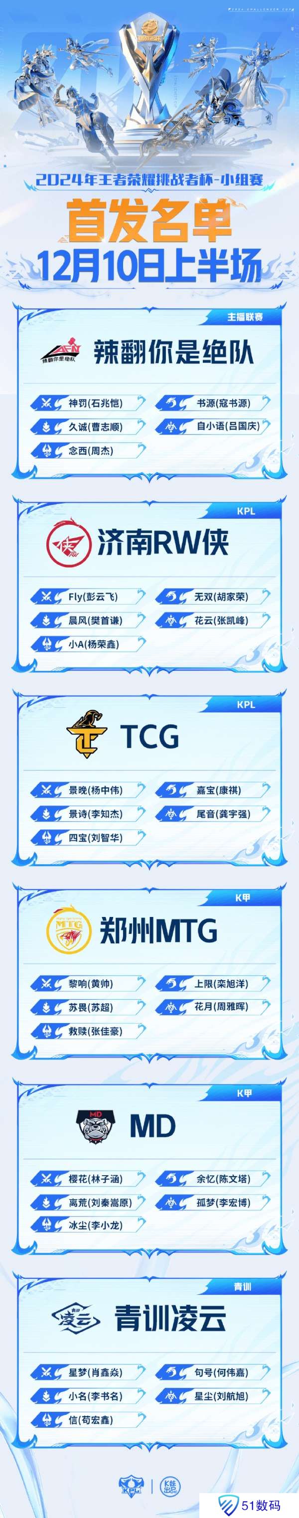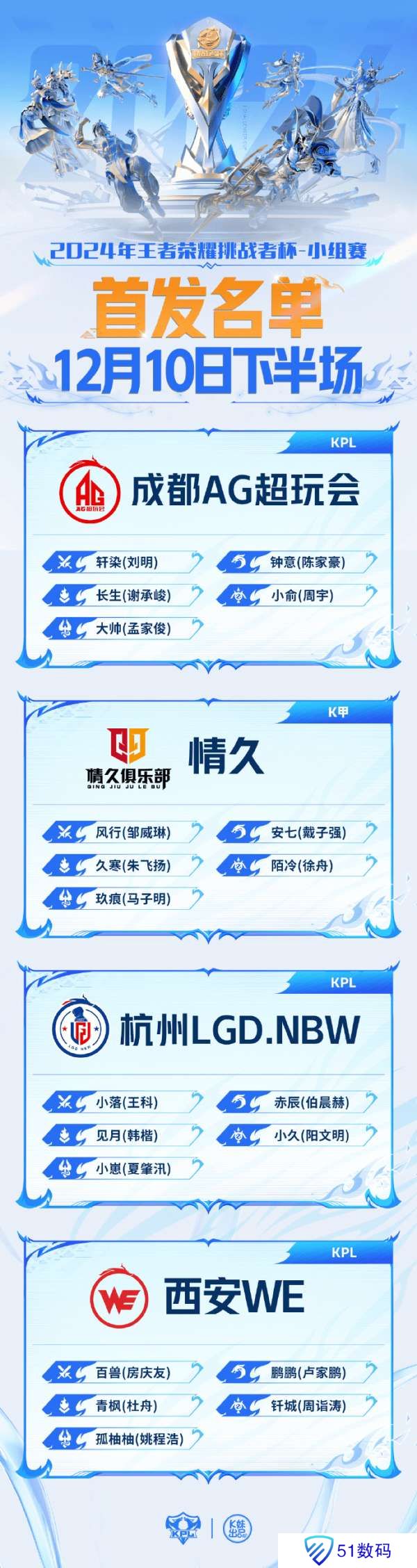 2024年王者荣耀挑战者杯 小组赛W1D4【首发名单】送达 !