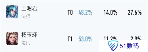 从巅峰赛顶端局分路数据来看:中路杨玉环胜率50.2%,辅助杨玉环胜率55.7%,被动绿环和大招回血使其比其他工具人法师更适合打辅助。