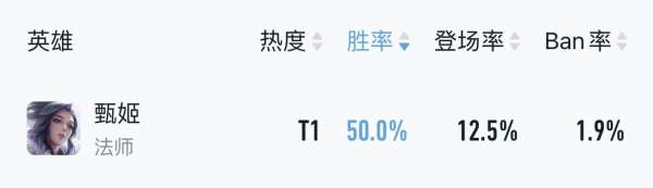 上赛季甄姬遭遇连续削弱加上其他法师的崛起,整体强度已经下滑至T1梯队,近期巅峰赛胜率已经跌至50%。