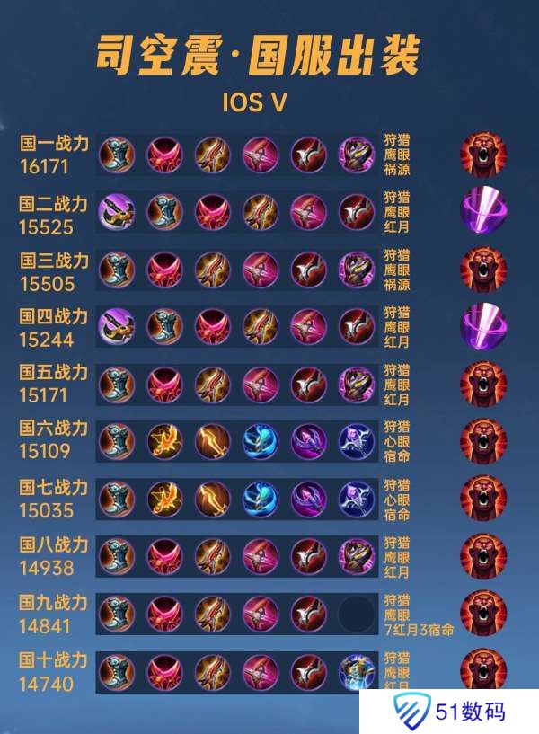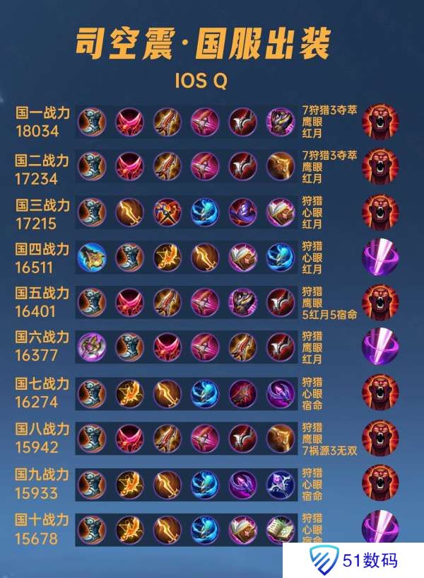 超过一万七千战力的一共有6个,法装和输出装备的比例是1:1。最高战力选择的是物理出装,所以我们的标准出装推荐就按照物理出装来。