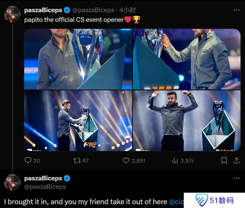 在日前进行的上海Major淘汰赛阶段,波兰传奇选手pasha和Major奖杯一同亮相。