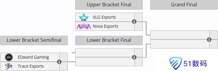 淘汰赛阶段为双败赛制,XLG与NOVA将在胜者组决赛率先决出一个总决赛的席位,EDG与TE将从败者组半决赛打起。