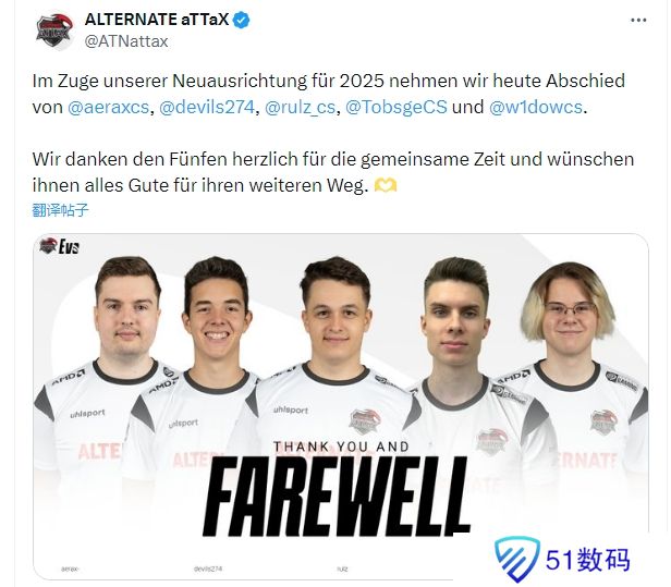 ALTERNATE aTTaX发表公告宣布与五名青训队选手分道扬镳。
