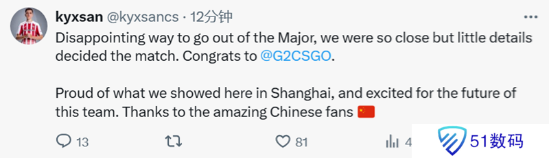 kyxsan:以失望的方式告别Major。我们如此接近,但最终细节决定成败。祝贺G2。