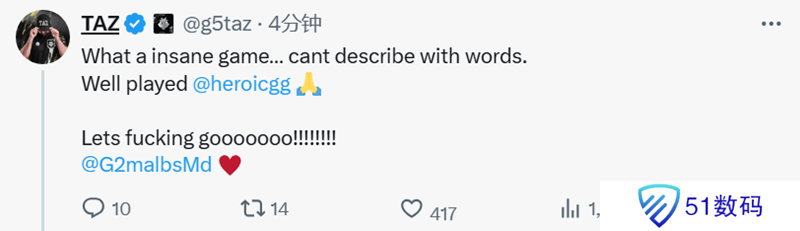 TaZ:多么精彩的一场比赛,难以用语言来形容。