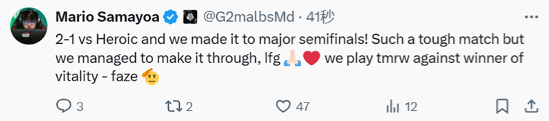 HEROIC晋级半决赛。一起看看选手们的赛后动态吧。