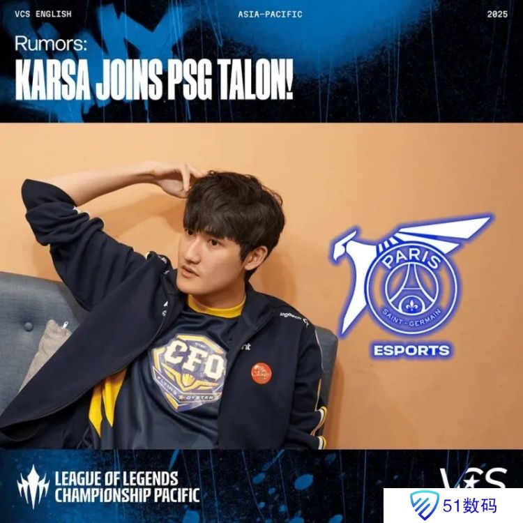 直播吧11月22日讯 VCS英文推特账号官宣,打野选手Karsa将加入PSG担任他们2025年参加LCP联赛的新打野。