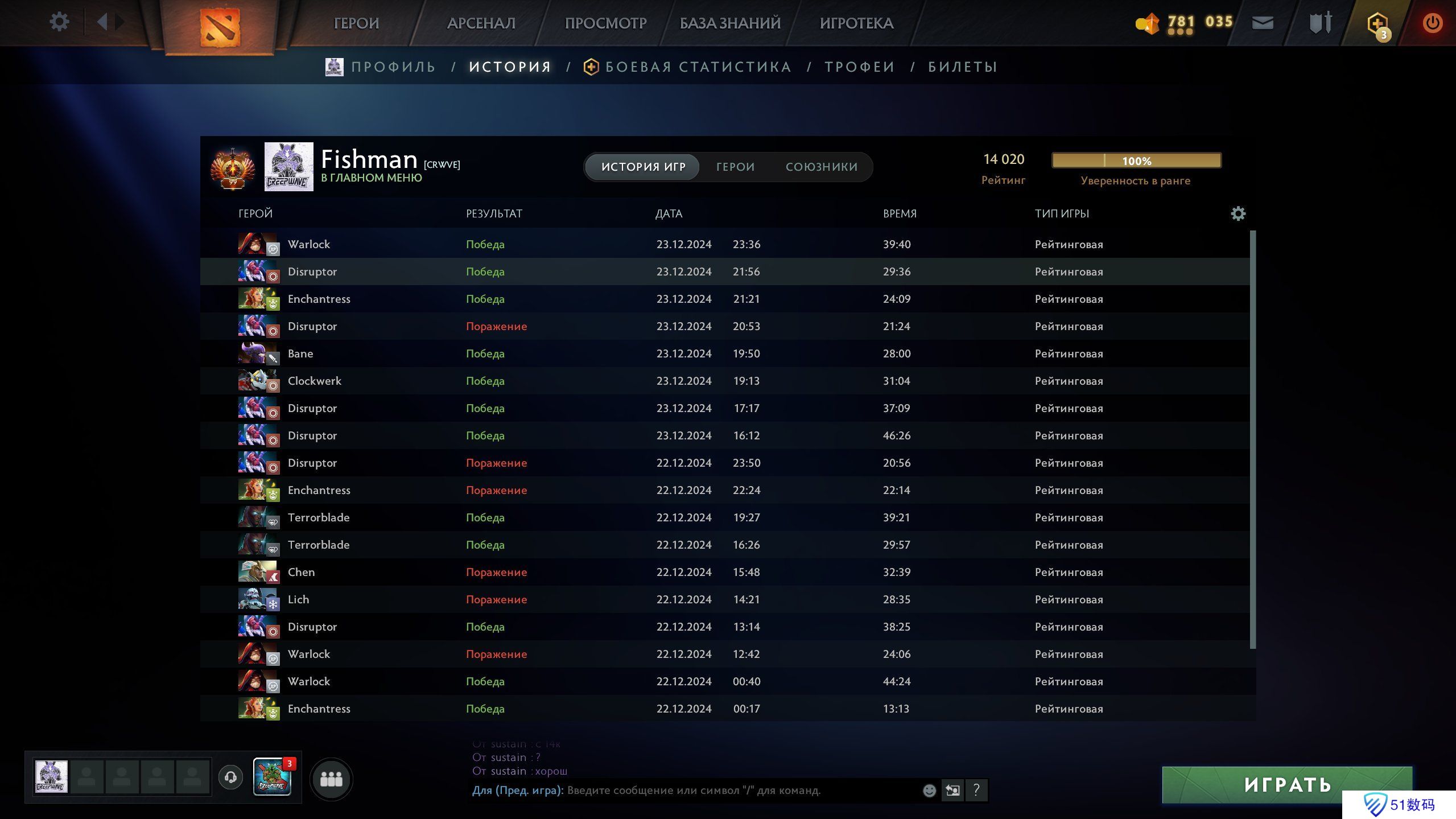 Fishman的Dota2天梯积分达到了14000