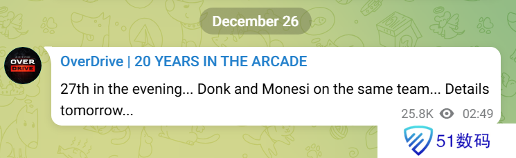 “27日晚上...donk和m0NESY在同一支队伍。更多细节明天分享。”