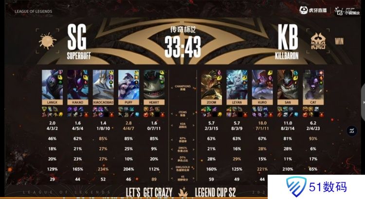 KB:上单Zoom、打野Leyan、中单Kuro、下路san、辅助Cat