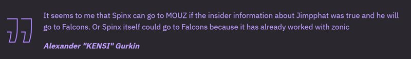 KENSI:Spinx要么去MOUZ,要么去Falcons